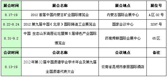 天瑞儀器2012年8月份展會(huì)、會(huì)議預(yù)告