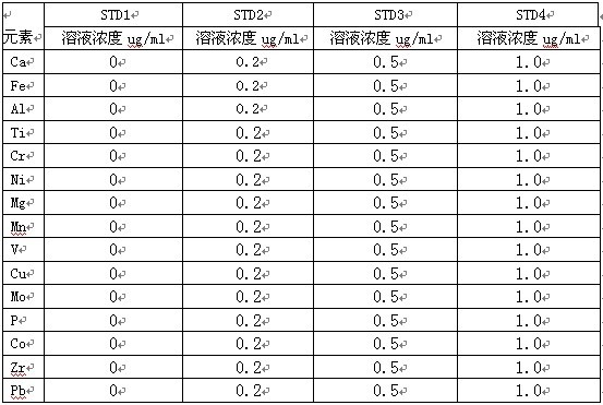 樣品處理:稱取0.5000g試樣置于100mL燒杯中,加5mL鹽酸、2~3mL硝酸,置于電熱板上加熱溶解,加入5ml高氯酸,加熱至冒煙,取下冷卻,加入20mL水,加熱溶解鹽類。冷卻,移入100mL容量瓶中,用水稀釋至刻度,混勻。試液中如有碳化物、硅酸等沉淀物析出,須干過(guò)濾。